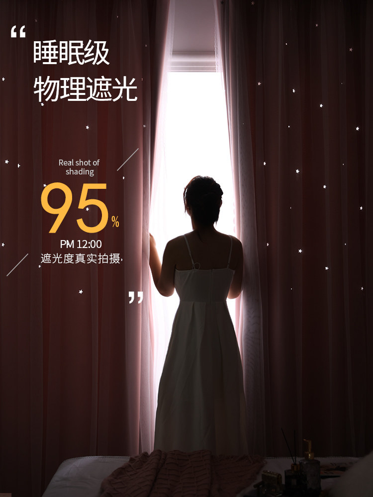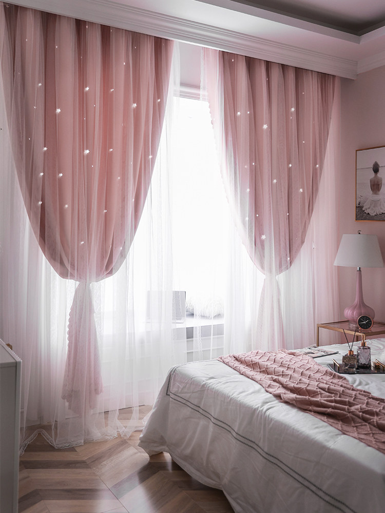 Curtain double layer with yarn pink Children's room dreamy curtains veil Mantle Thickened shading Hook Bedroom Sunb