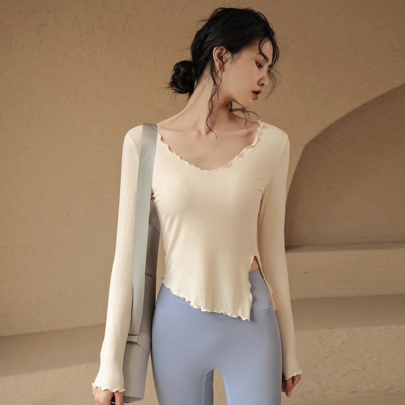 Skinny gym clothes women's quick-drying sports tops running long-sleeved T-shirts are worn out to show slim stretch yoga clothes spring and summer