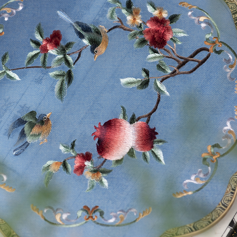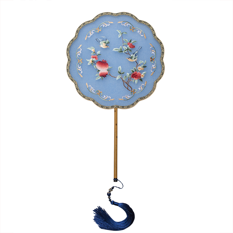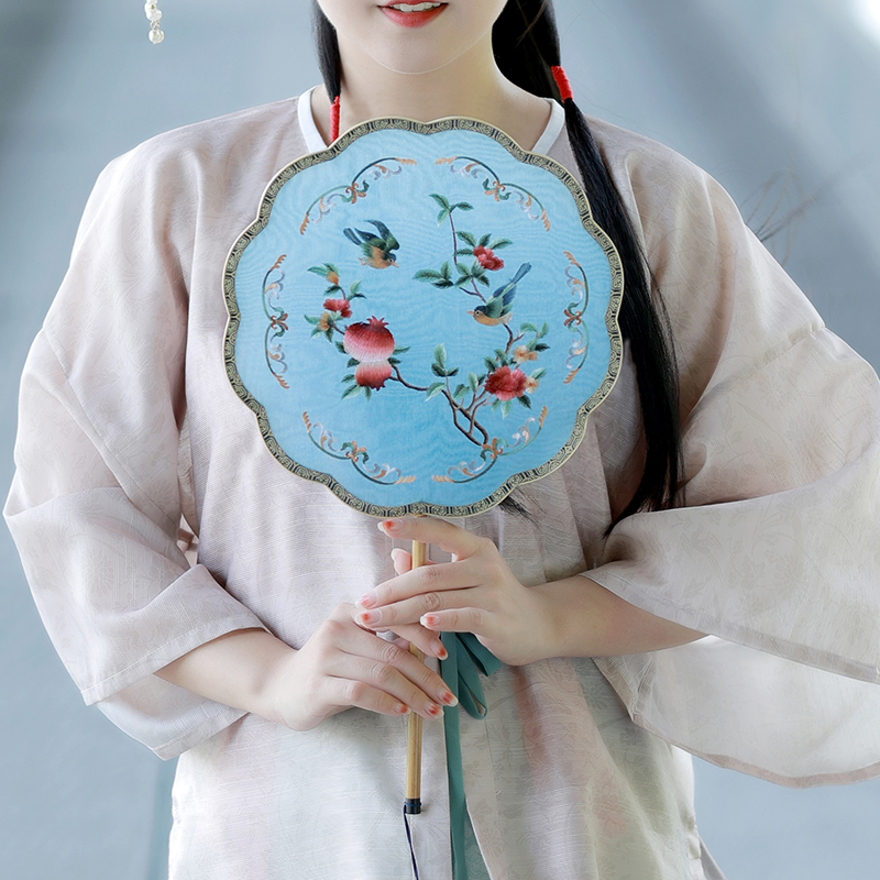 Sieve moon ancient fan embroidery Xiangfei bamboo handmade Su embroidery Hanfu round fan palace fan single-sided embroidery retro group fan