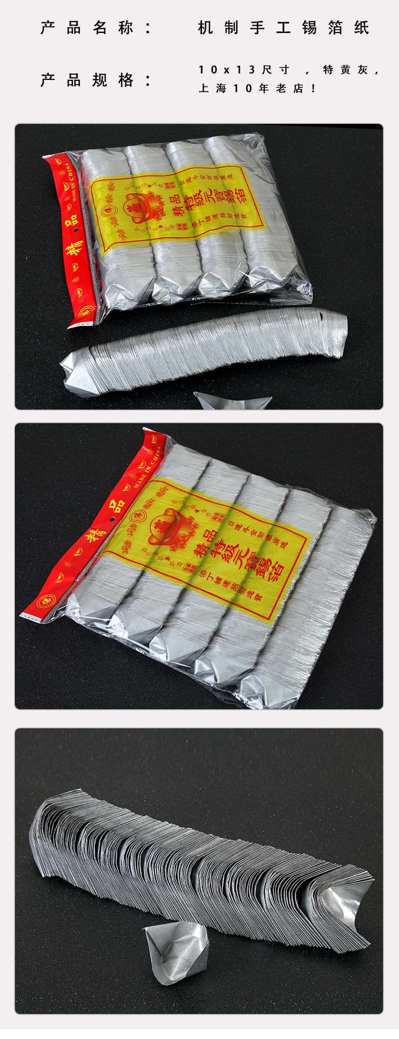 Tin foil supplies 1000 tin foil Yuan Baotin foil paper gold and silver Buddha with Yuan Bao Qingming hand folded Mint Burn Paper Money-Taobao