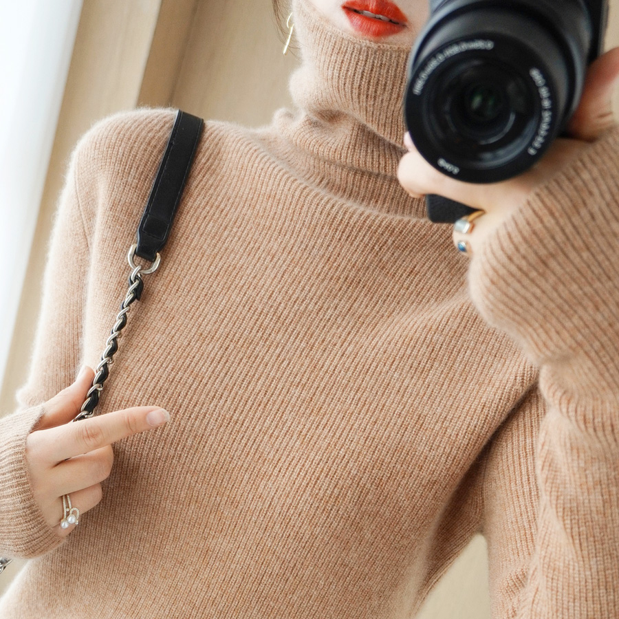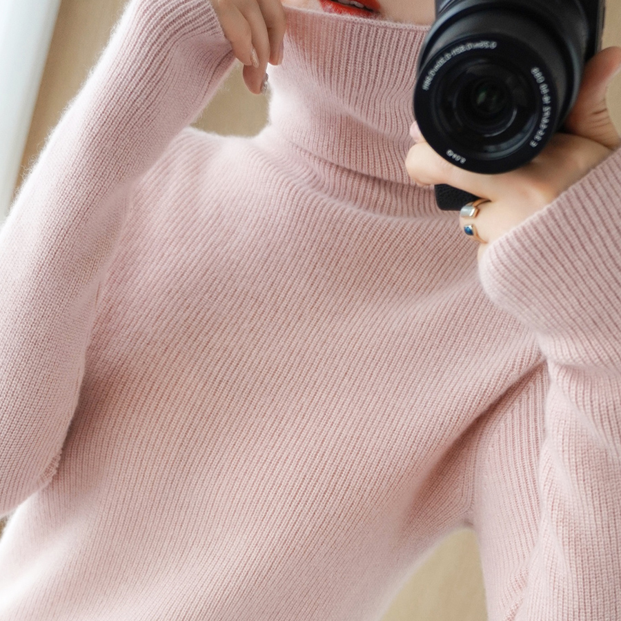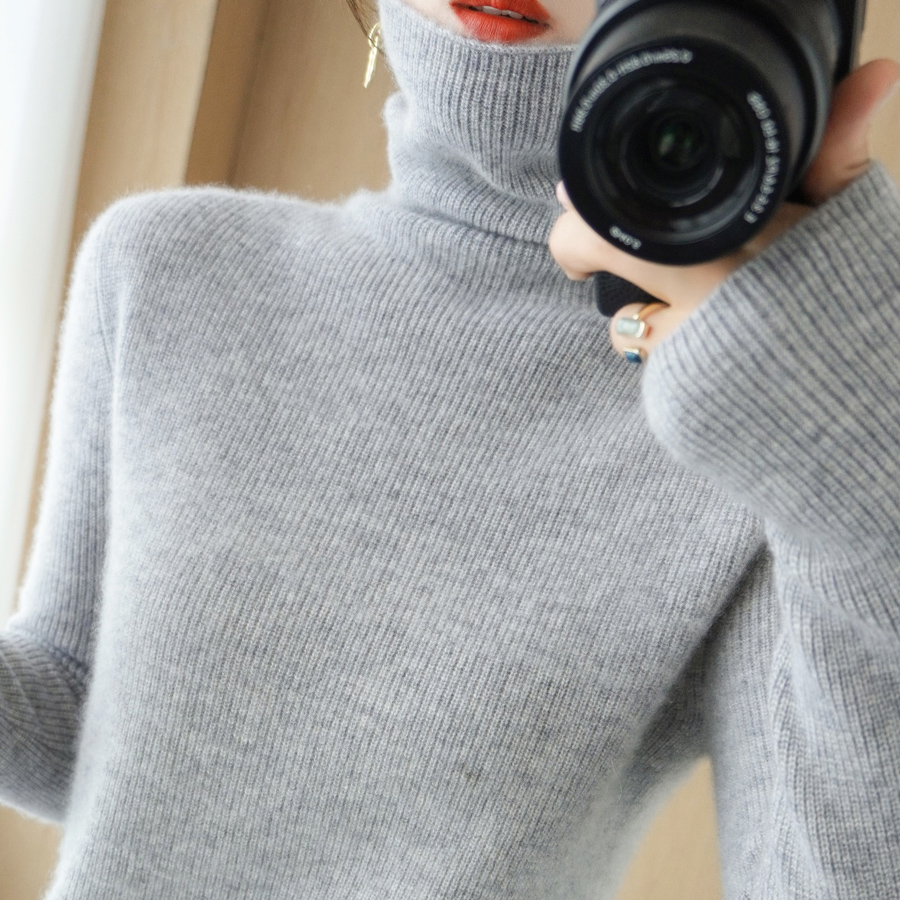 Wool Knit Women's Autumn and Winter New Pile High Neck base shirt Non Cashmere Sweater Long Sleeve Interior Slim Top