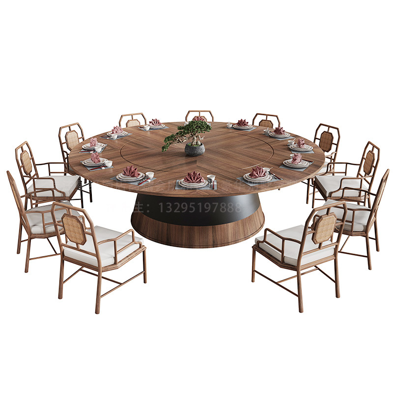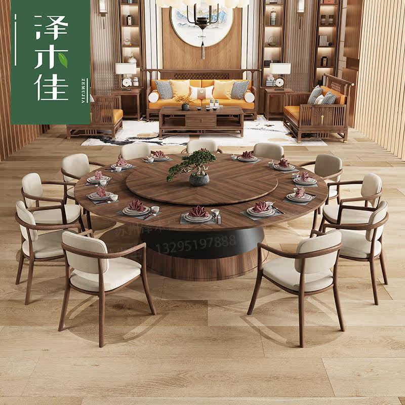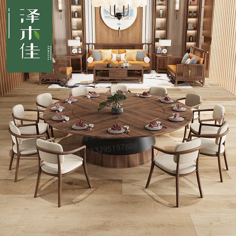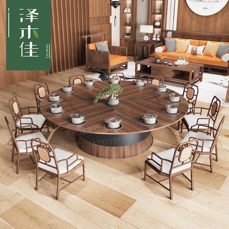 Hotel electric dining table large round table new Chinese-style solid wood hotel club high-end dining room slate marble hot pot table