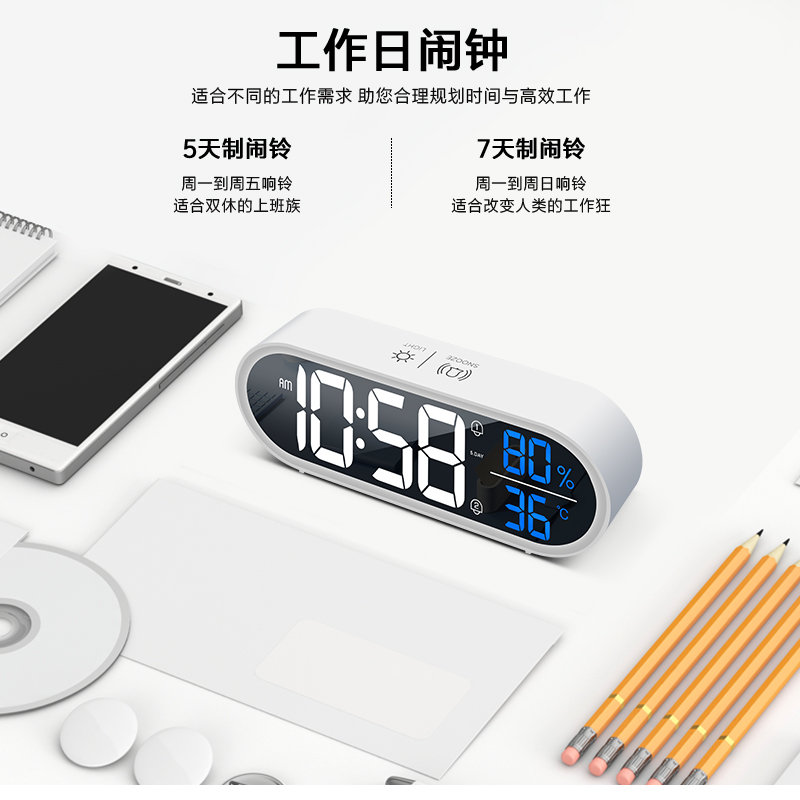 Temperature and humidity meter household indoor thermometer high-precision electronic room temperature meter student alarm clock dry and wet thermometer