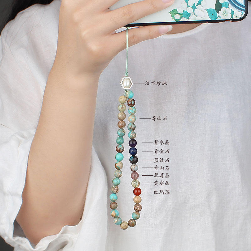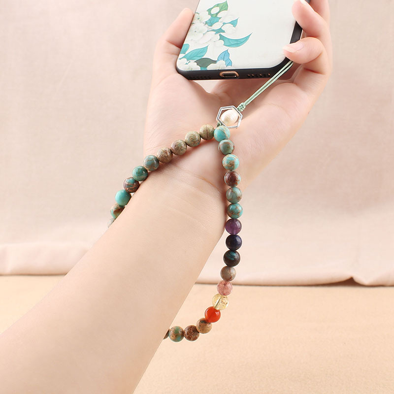 Seven colorful sushi mountain stone short mobile phone hanging rope