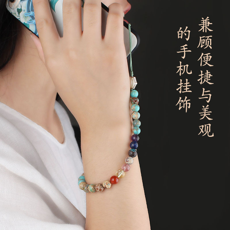 Mobile phone hanging rope Shoushan stone female section hanging decoration mobile phone hanging rope Short-style net red ancient wind pendant short wrist short hanging rope
