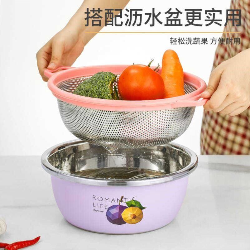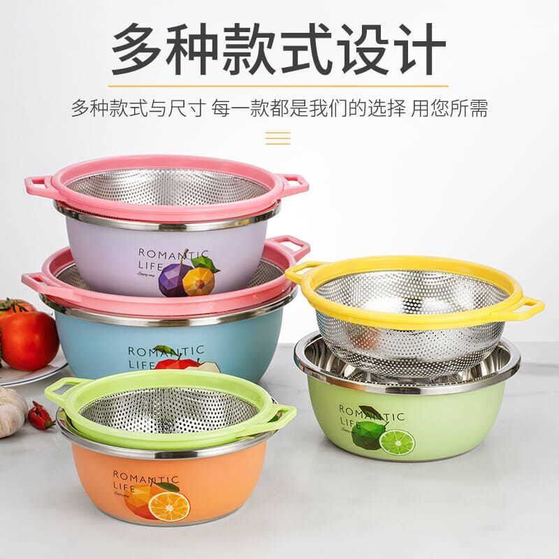 Drain basin Two sets 304 Stainless Steel Wire Drawing Basin Home Kitchen Beaten Egg and face basin Wash Vegetable baking basin Special