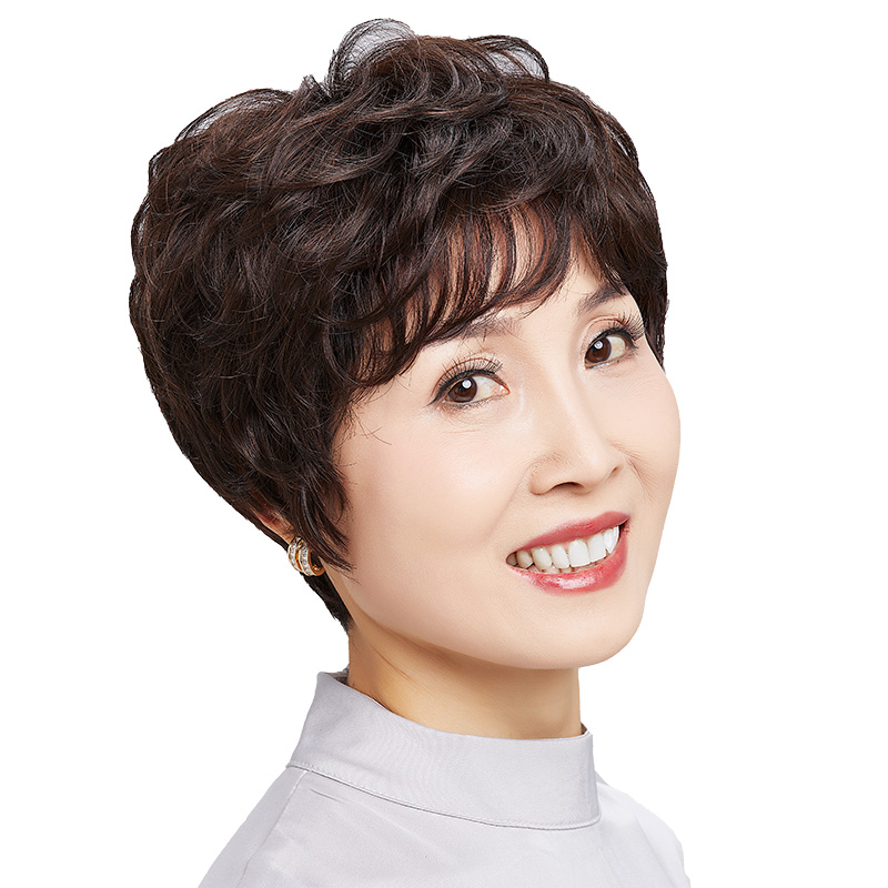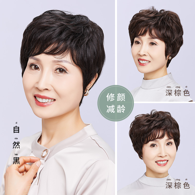 Wig female short hair mother full headgear ladies middle-aged and elderly fashion models real hair full real hair invisible natural