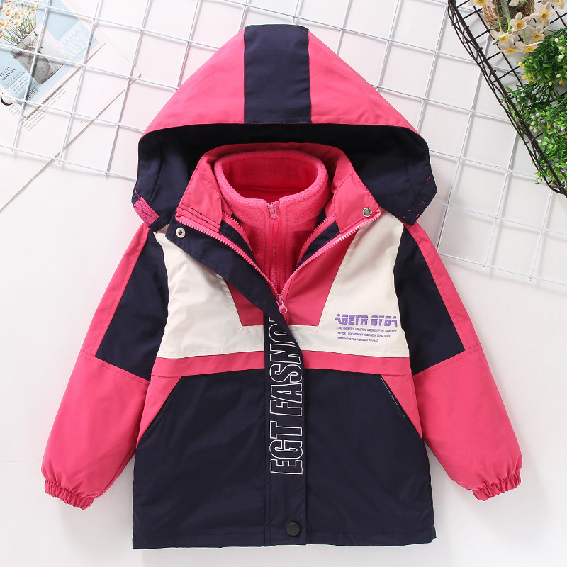 Girl 2022 new autumn and winter sub-machine clothes in three-in-one detachable CUHK Winter Clothing Children Plus Suede Thickened Jacket