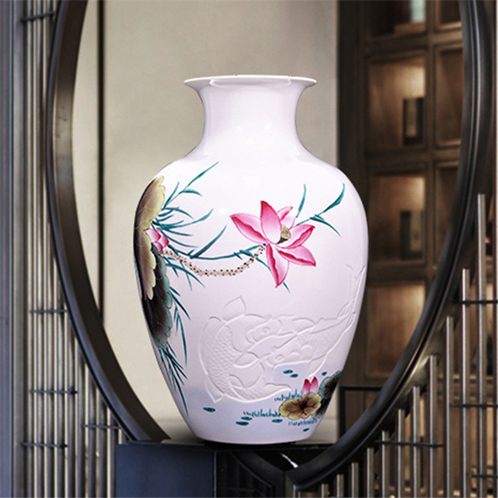 Jingdezhen ceramic hand-painted vase with flower arrangement for years, Chinese half-knife clay living room TV cabinet swing piece handicraft