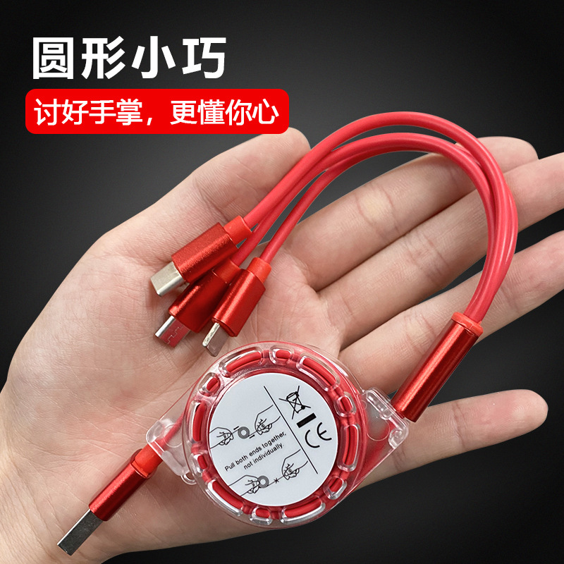 Three-in-one telescopic containing data line one drag three mobile phone charging head fast charging line gift custom logo suitable for Android Apple type-c advertising advertising pattern custom printed lettering