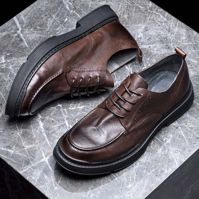 Leisure leather shoes men 2023 British wind leather black spring and autumn with men's soft - leather handmade shoes