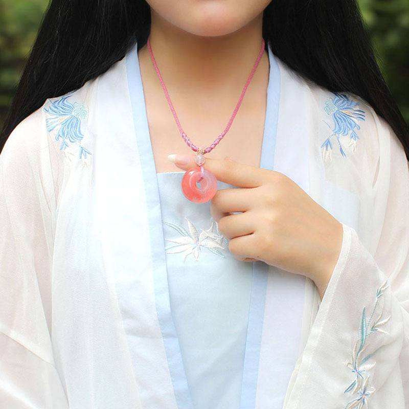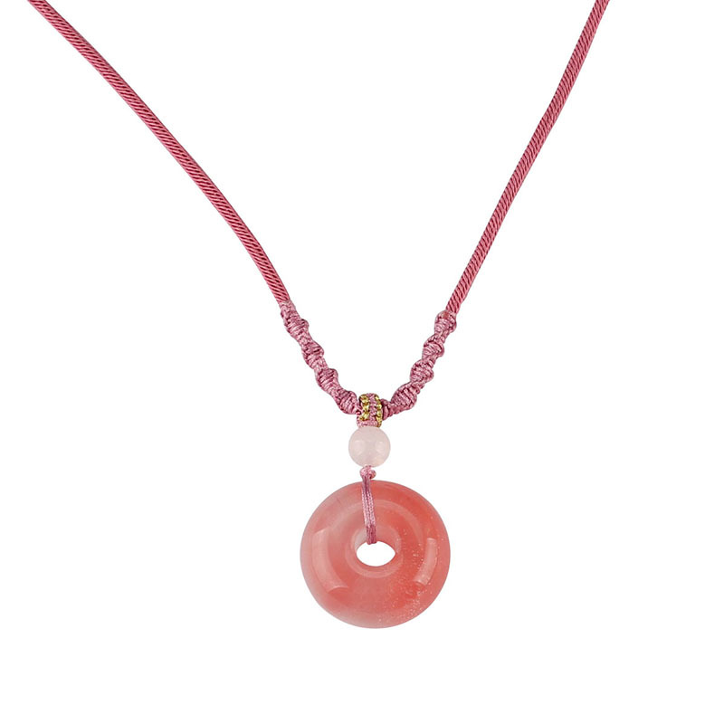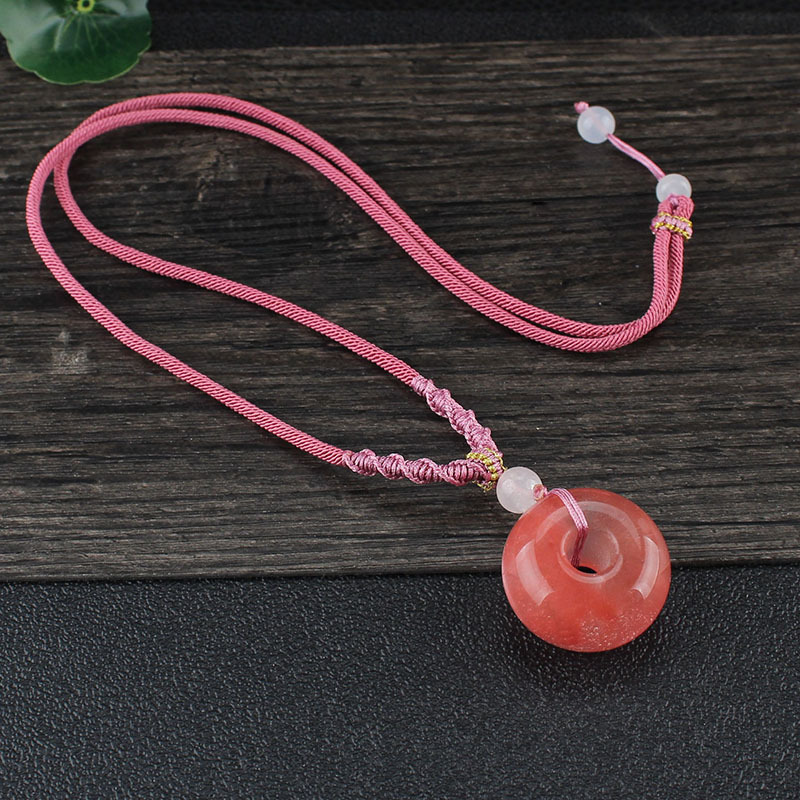 Watermelon Crystal Safe Button Adjustable Rope Necklace Dongling Jade Safe Button Adjustable Rope Necklace Powder Crystal Safe Button Adjustable Rope Necklace Red Manau Safe Button Adjustable Rope Necklace