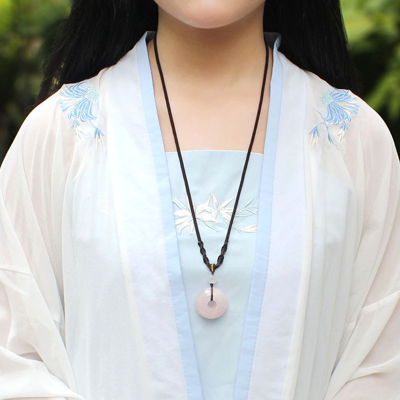 Ethnic Wind East Mausoleum Jade Powder Crystal Jade Pendant Sweater Necklace 100 Hitch Necklace Accessories