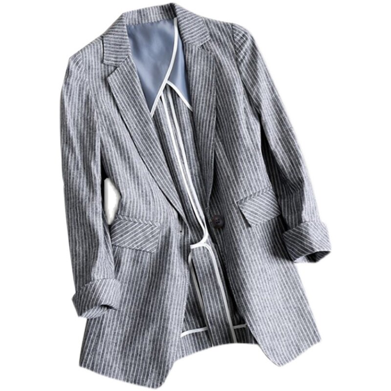 SNICYKER small suit jacket women's 2021 autumn new casual short striped slim linen top
