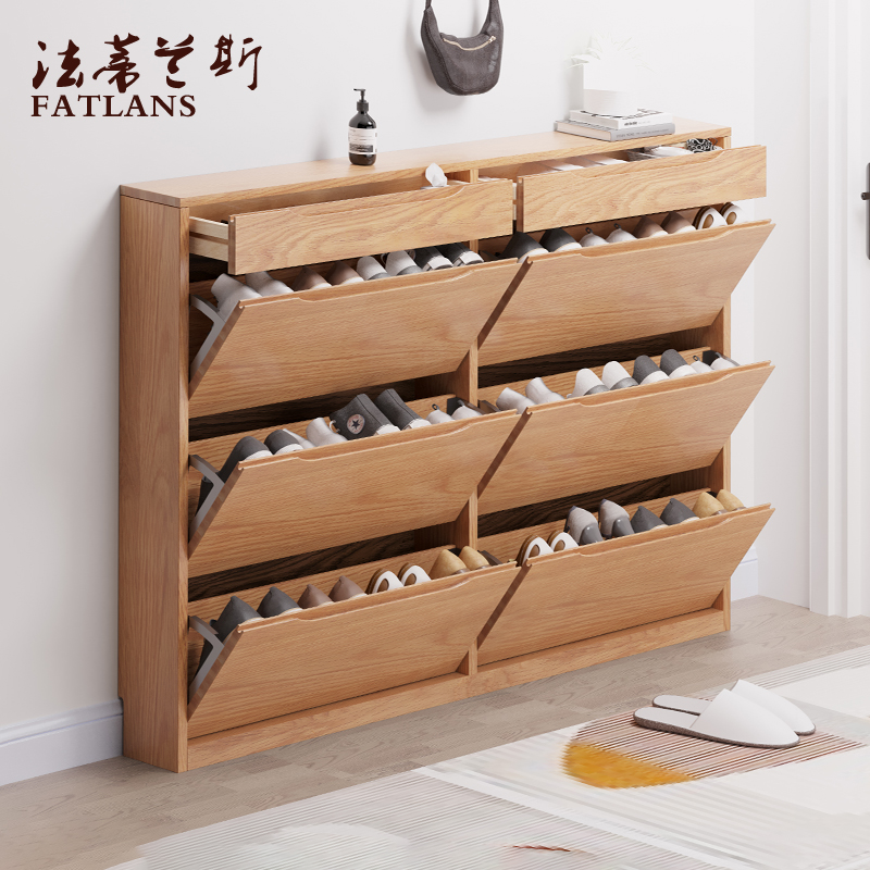 Pure solid wood oak log against the wall 17cm narrow custom ultra-thin door door door shoe cabinet 2021 new