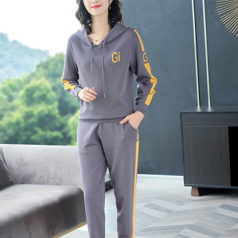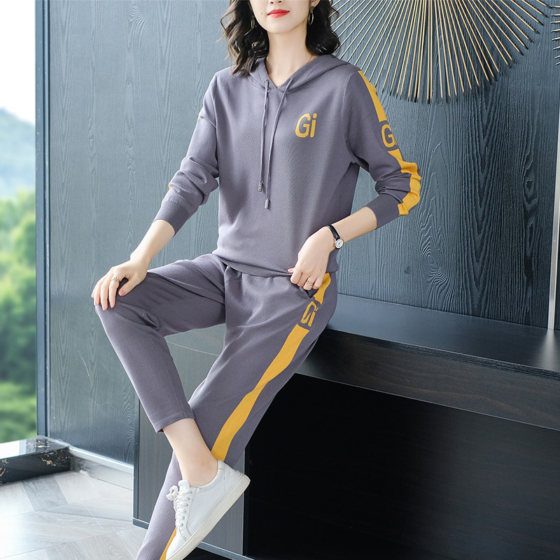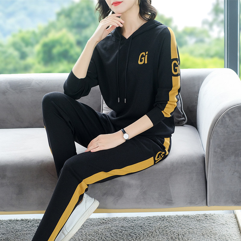 Loose Tandem Caps Casual Ice Silk Knit Sports Suit Women Fall Foreign Pie Age Fashion Sportsuit Two Sets