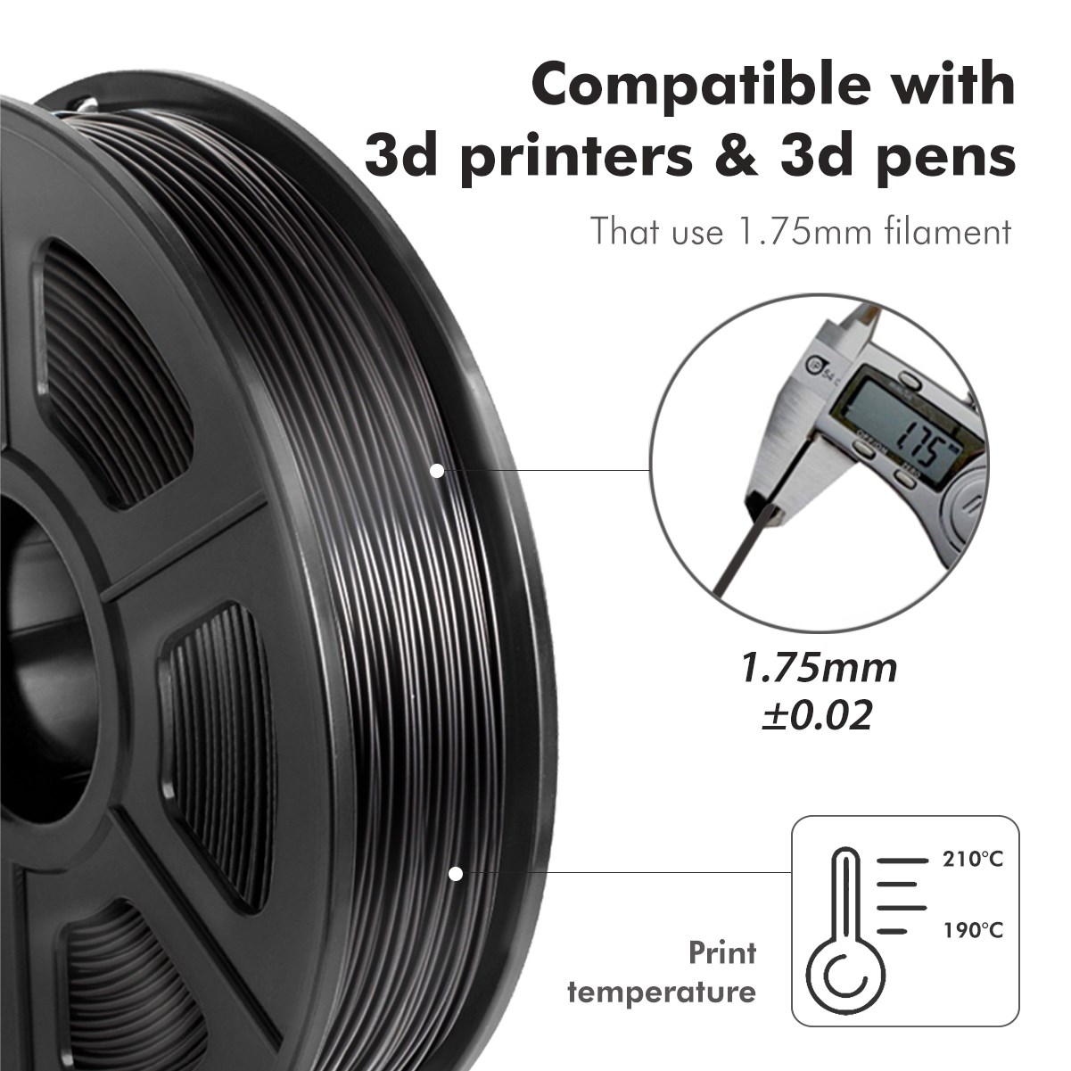 SUNLU 3D Printing Filament Black Flexible TPU Filament 1 75