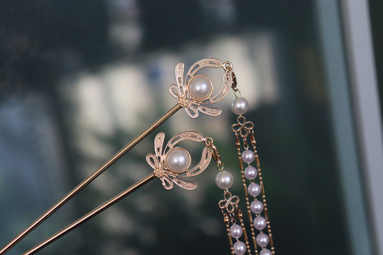 A bright moon hair stick, a pair of bright moon hair sticks