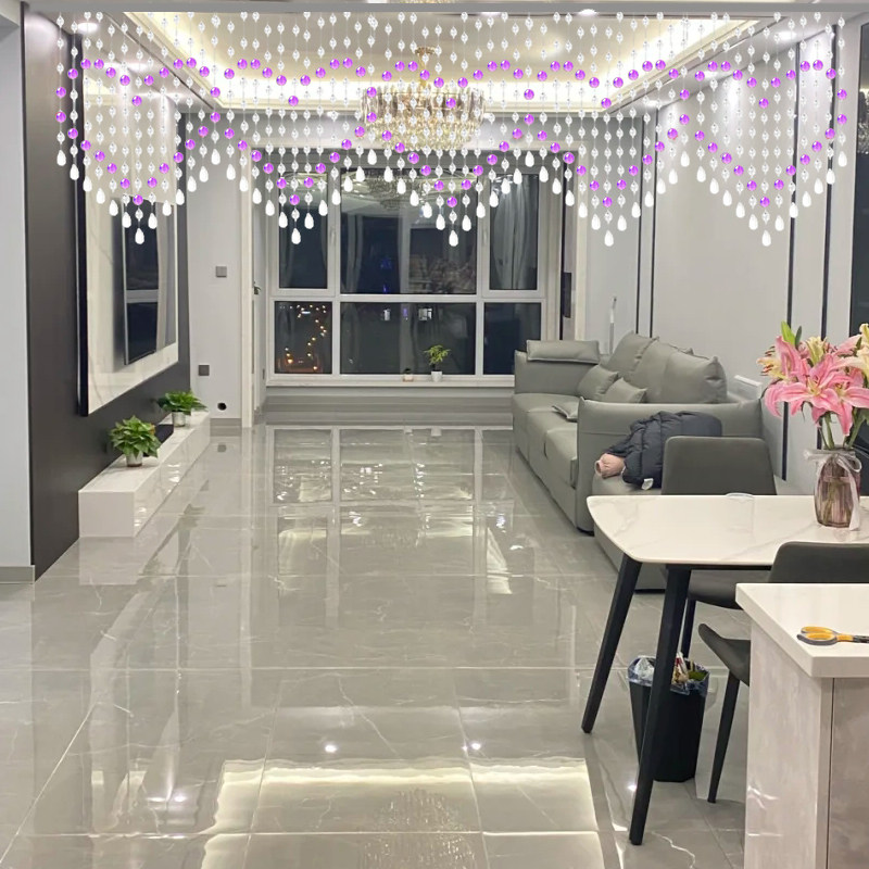 Purple crystal bead curtain non-perforated light luxury Princess wind 2021 new bedroom living room compartment hanging curtain modern