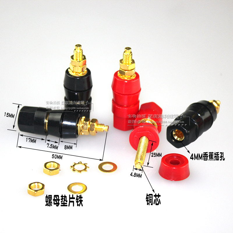 Gilded pure copper core hexagonal post head large current 4mm banana socket power amplifier speaker sound wiring terminal-Taobao