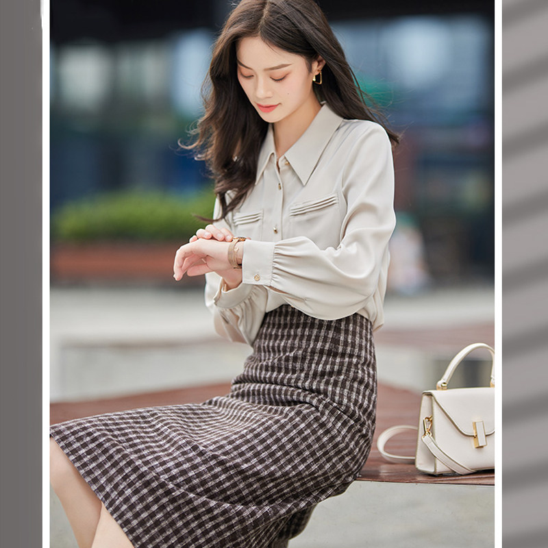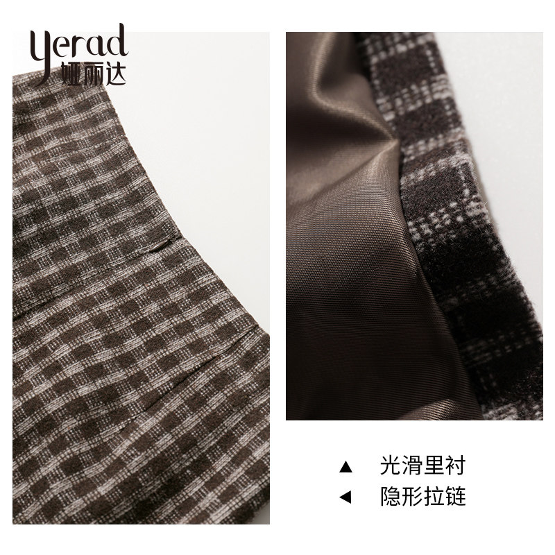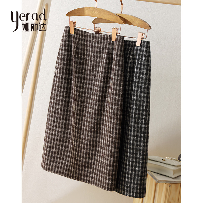 Arida plaid skirt women's 2022 new spring and autumn temperament split high waist thin a-line woolen skirt