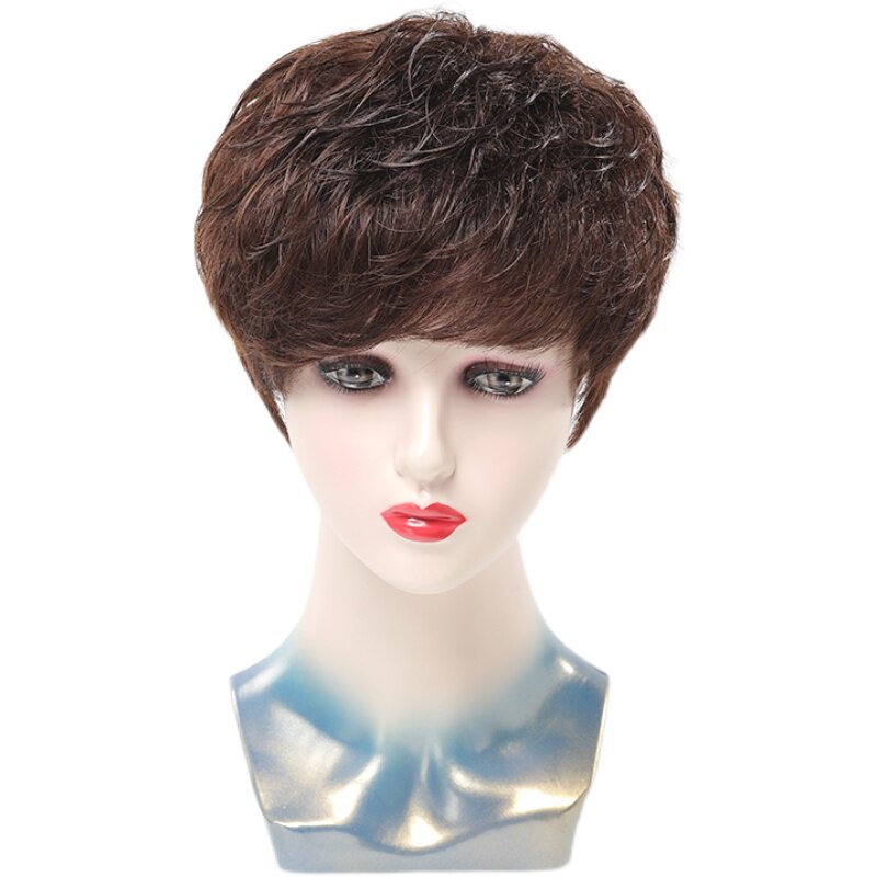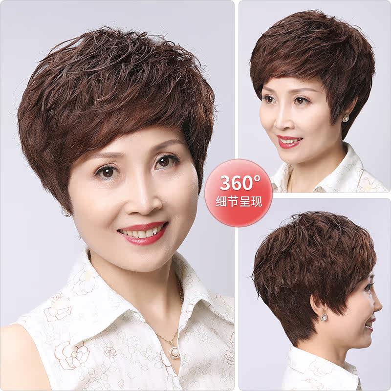 Wig Lady Short Curly Hair Old Age Mom Wig Slightly Curly Lady Short Haired Real Hair Silk Headgear