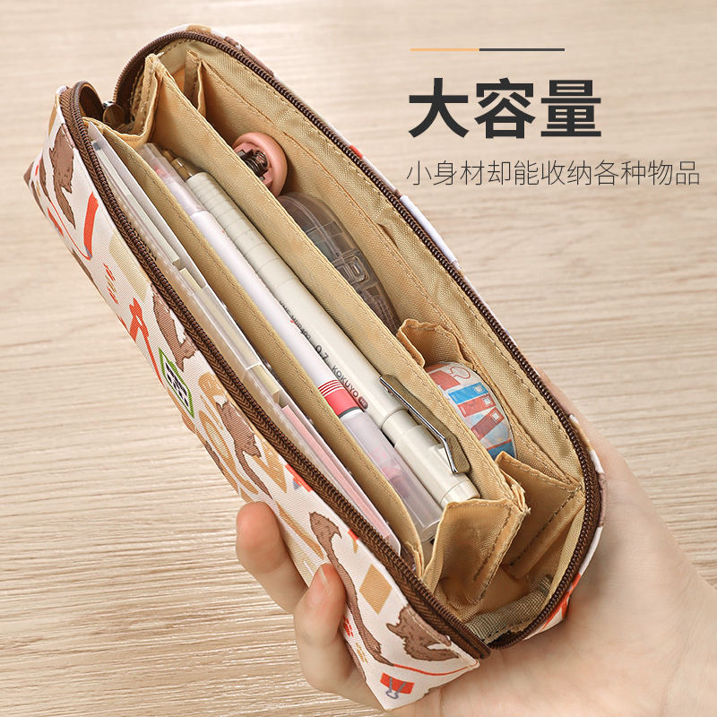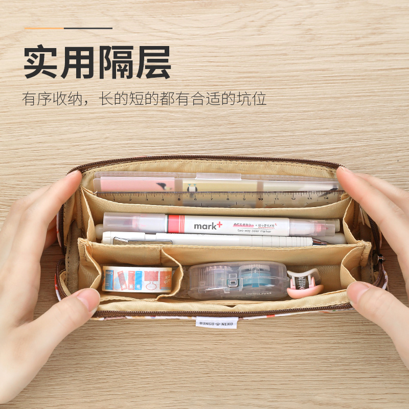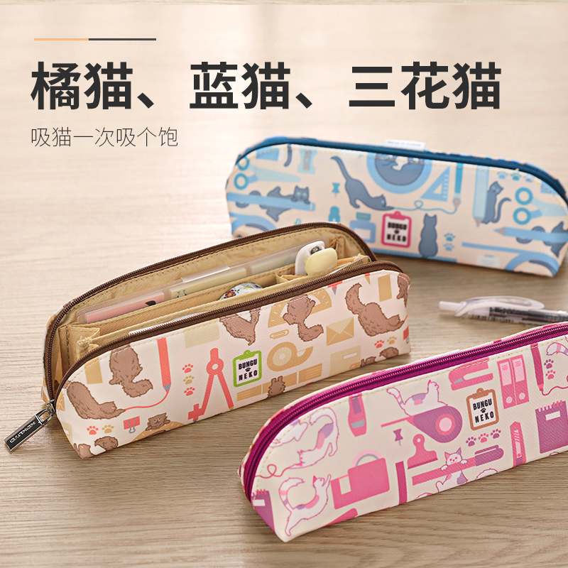 Japan's KOKUYO stationery cat polyester fiber pencil case primary school students cute stationery bag middle school students cartoon anime pencil bag bungu neko stationery box girl heart portable large-capacity pen