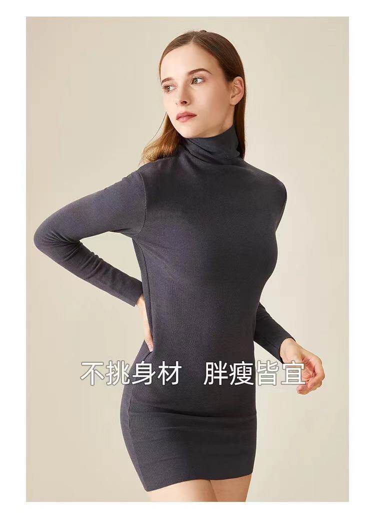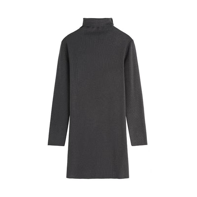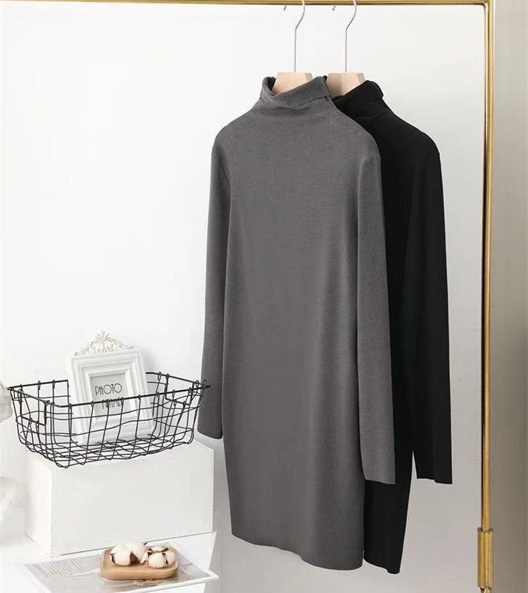 Duvet Bouric acid) High collar in high collar fit for Korean version of pure color knit warm beating bottom bag hip length dress