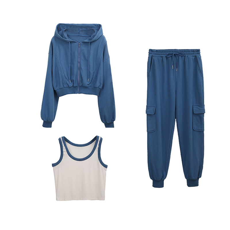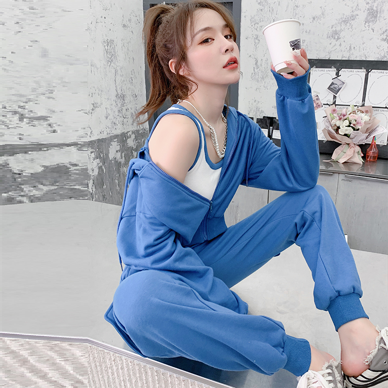 Leisure sports suit female spring 2023 new fashion trend red fried street with a hat jacket three pieces