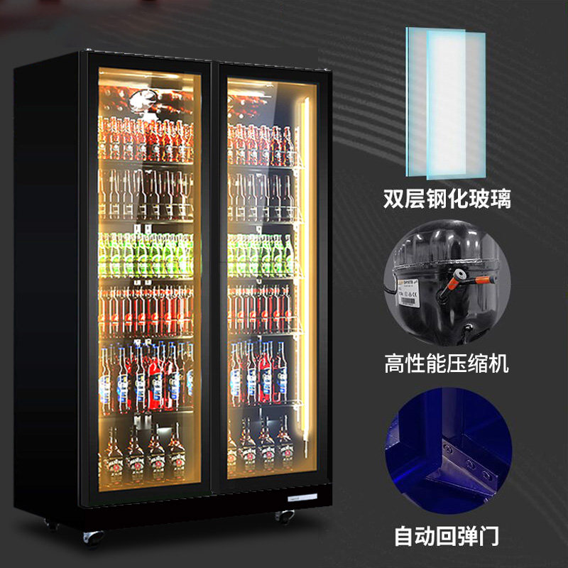 Beer Cabinet Drinks Tea Display Cabinet Commercial Double Glass Door Fridge Air-cooled refrigerated net red Drink water cabinet