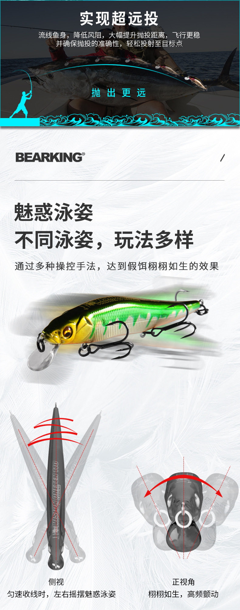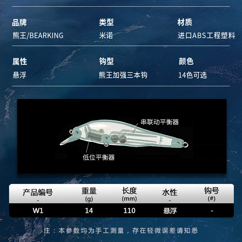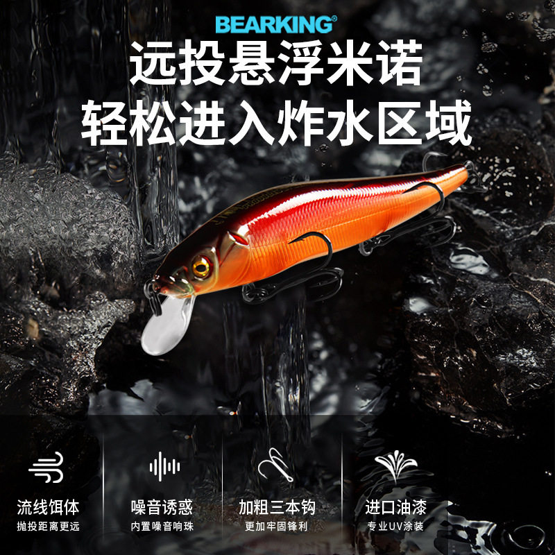 Xiongwang Luya bait fast oneten suspension mino fake bait 14g11cm cocked mouth black fish white striped freshwater long shot