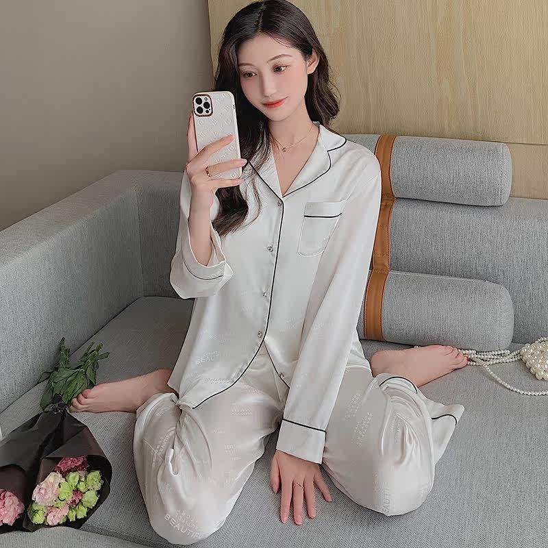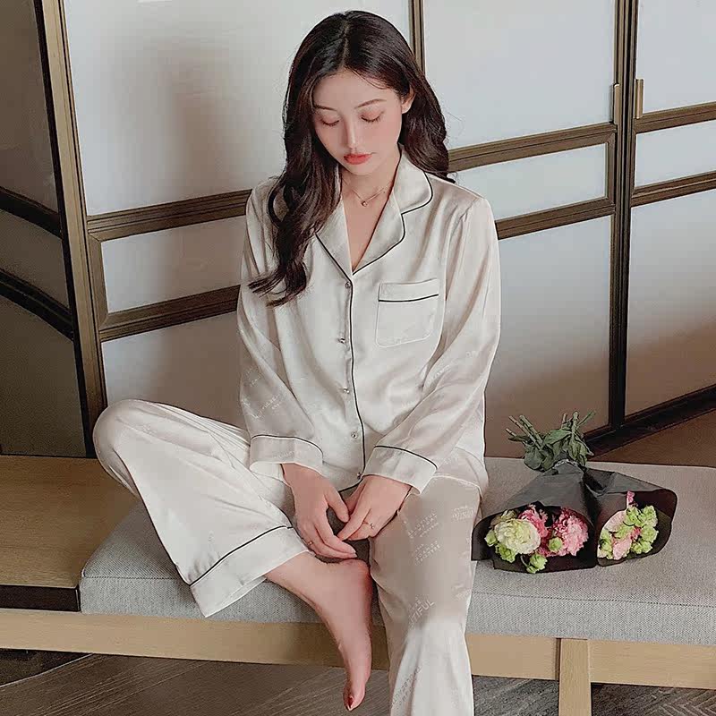 Pyjamas Spring and Fall Ice Screw Alphabet Sexy Sense Sense Silk Net Red Wear Home Summer