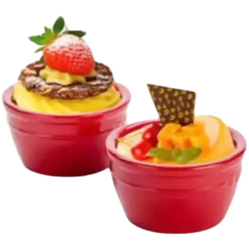 Red 20cm pot plus 2 ceramic bowls plus 2 coffee spoons 2 ceramic bowls