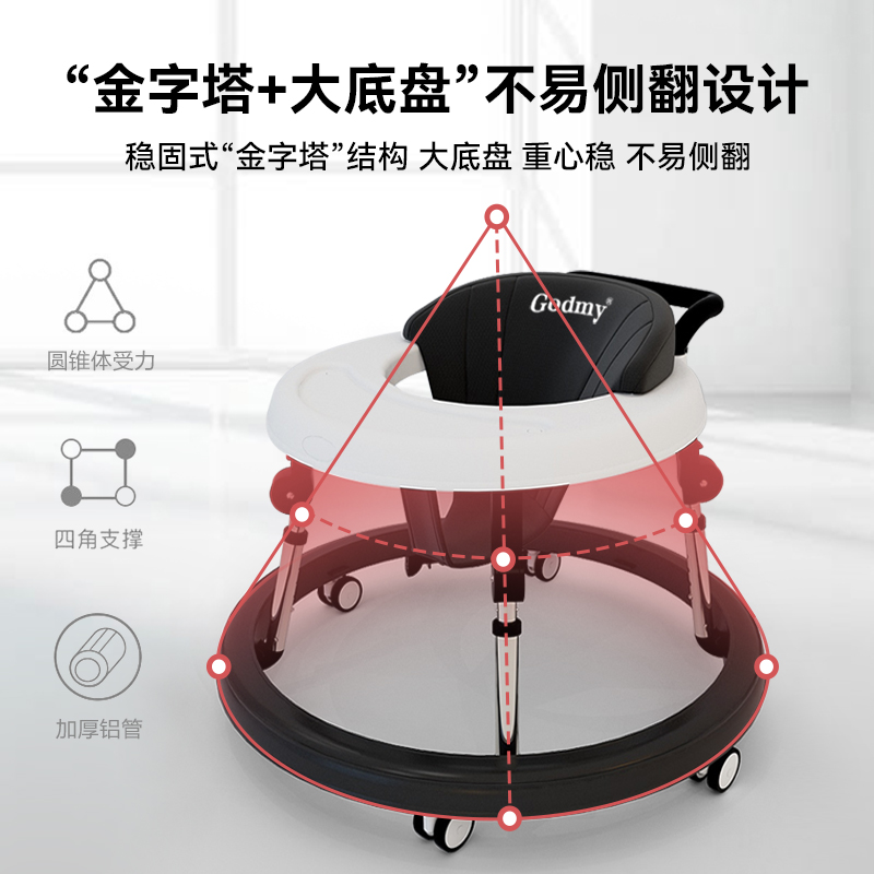 ✅This product has passed the national 3C certification (second generation basic model) anti-o-shaped legs and anti-rollover - black and white silver tube - mechanical button 10-speed adjustment (no push handle) (second-generation basic model) anti-o type