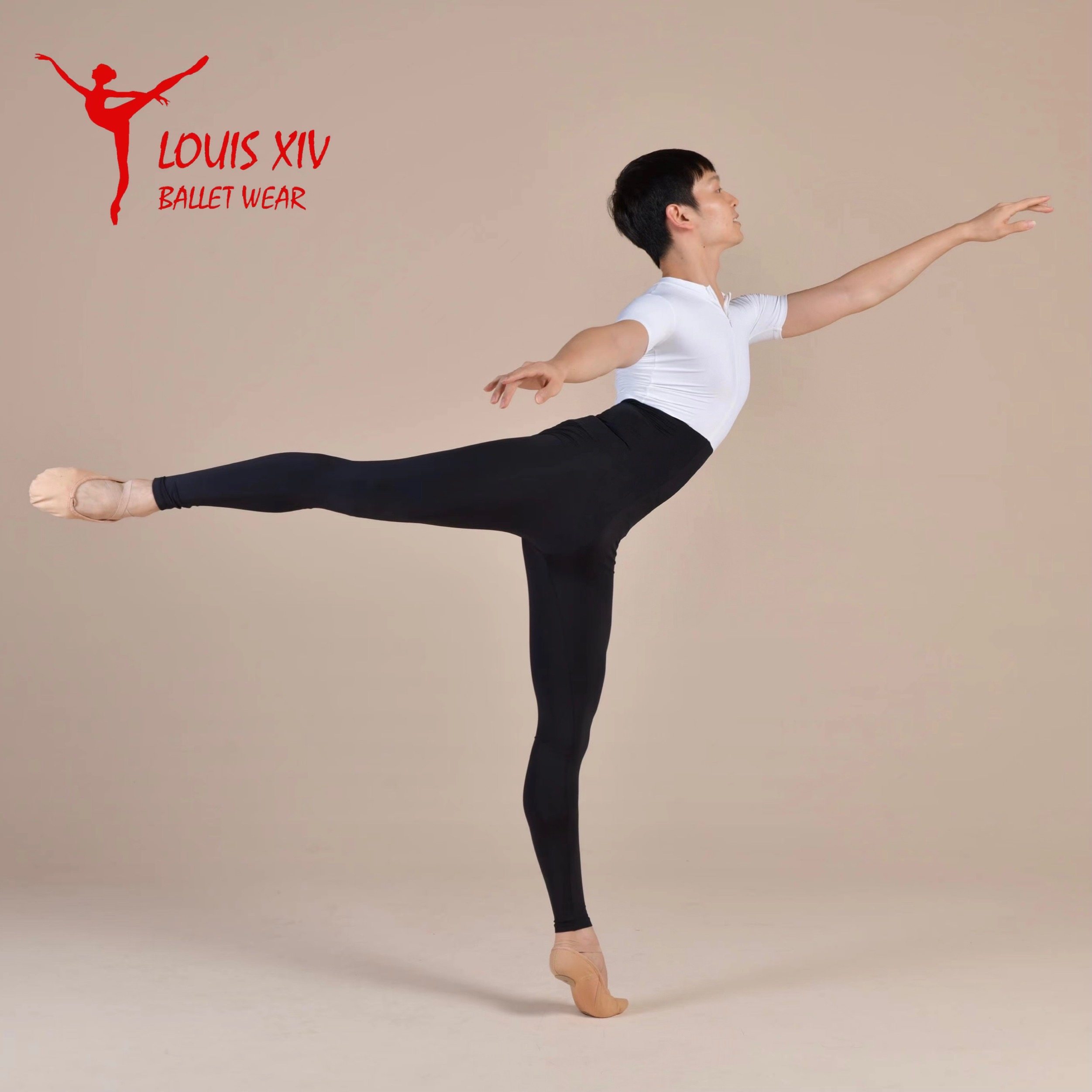 LOUIS XIV Ballet Boys Adult Professional Workout Jumpsuit High Neck Short Sleeves Panels Black Cropped Pants