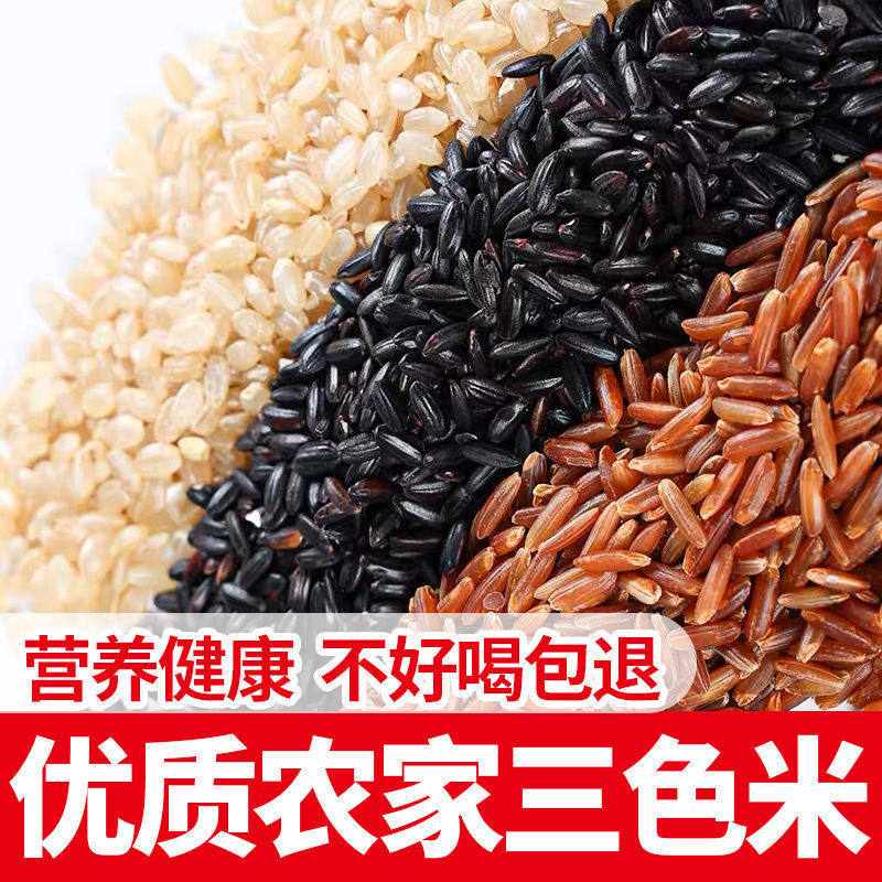 Whole grains satiety food three-color brown rice grains non-0-fat staple food fitness food black rice red rice grains low