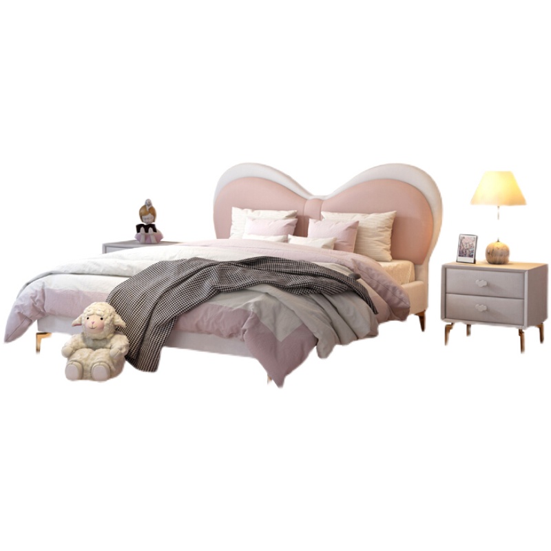 Nordic light luxury style children's bed girl princess bed simple pink bed single bed childlike butterfly bed leather bed