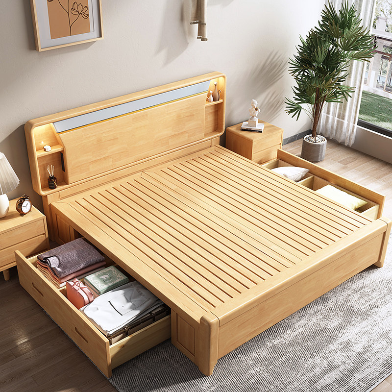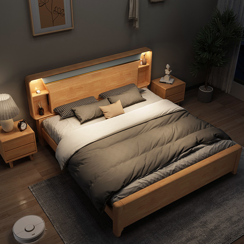 2*2 2m solid wood bed, 2*2 2m solid wood bed, 1 bedside cabinet 2*2 2m solid wood bed, 2 bedside cabinets 2*2 2m solid wood bed, 10cm environmental protection