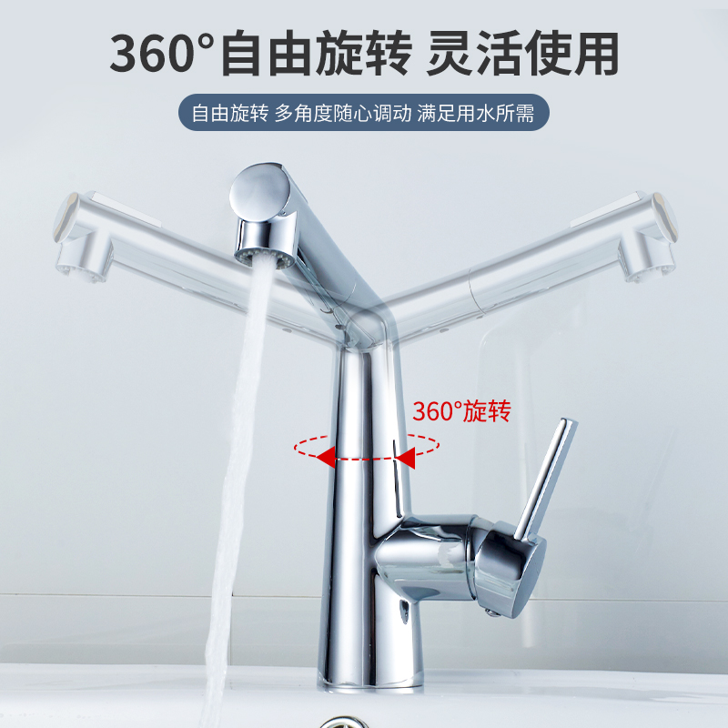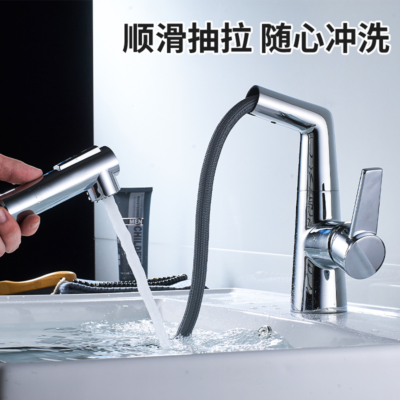 Cayessee pull-out surface basin tap hot and cold make-up room copper bath room cabinet washbasin swivel faucet