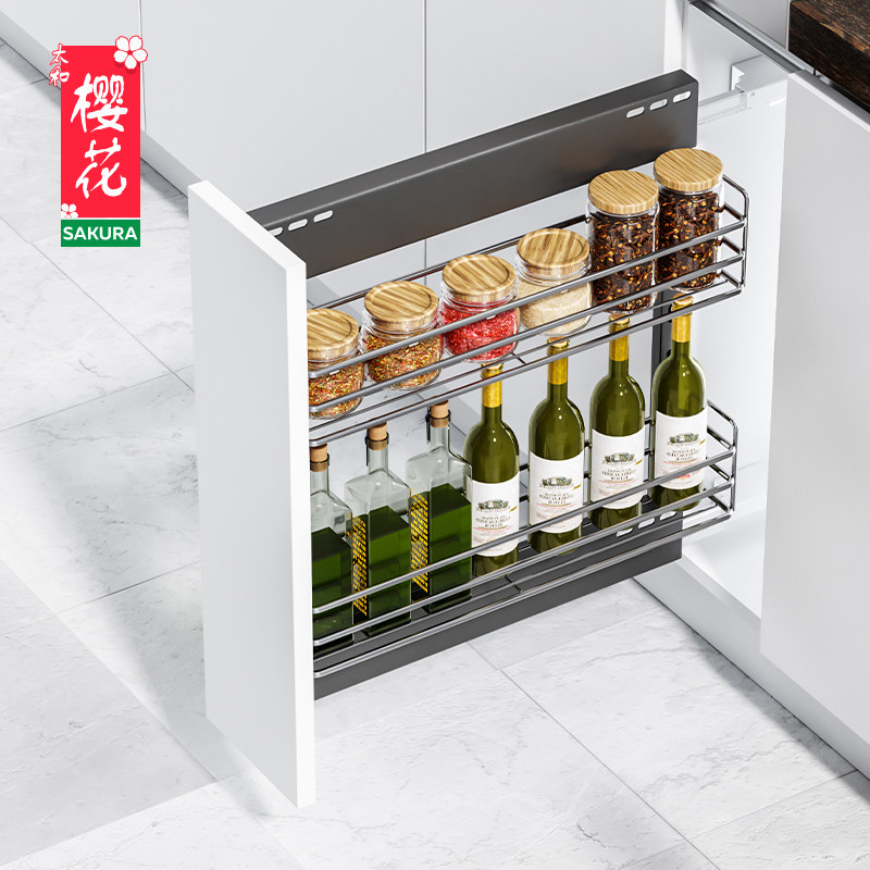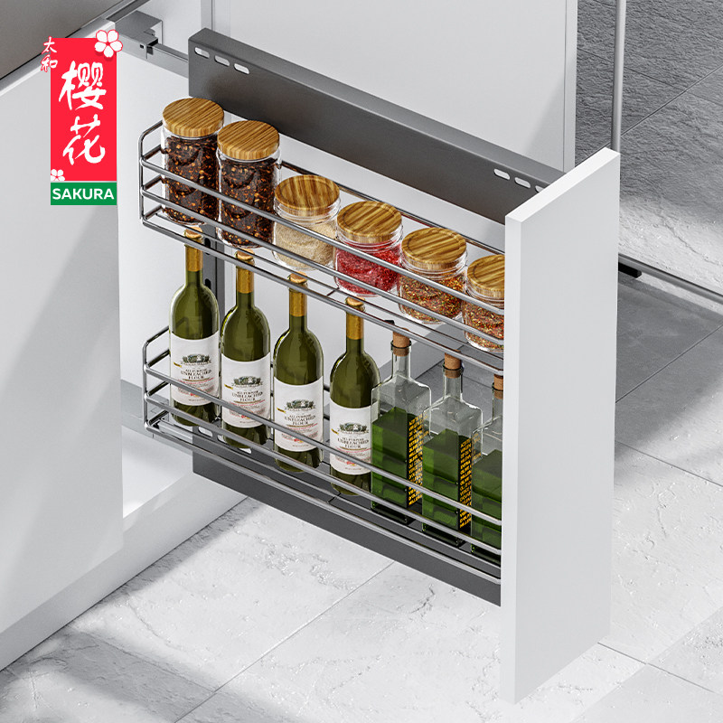 Sakura kitchen overall cabinet 304 stainless steel drawer type seasoning built-in rack small size narrow cabinet pull basket