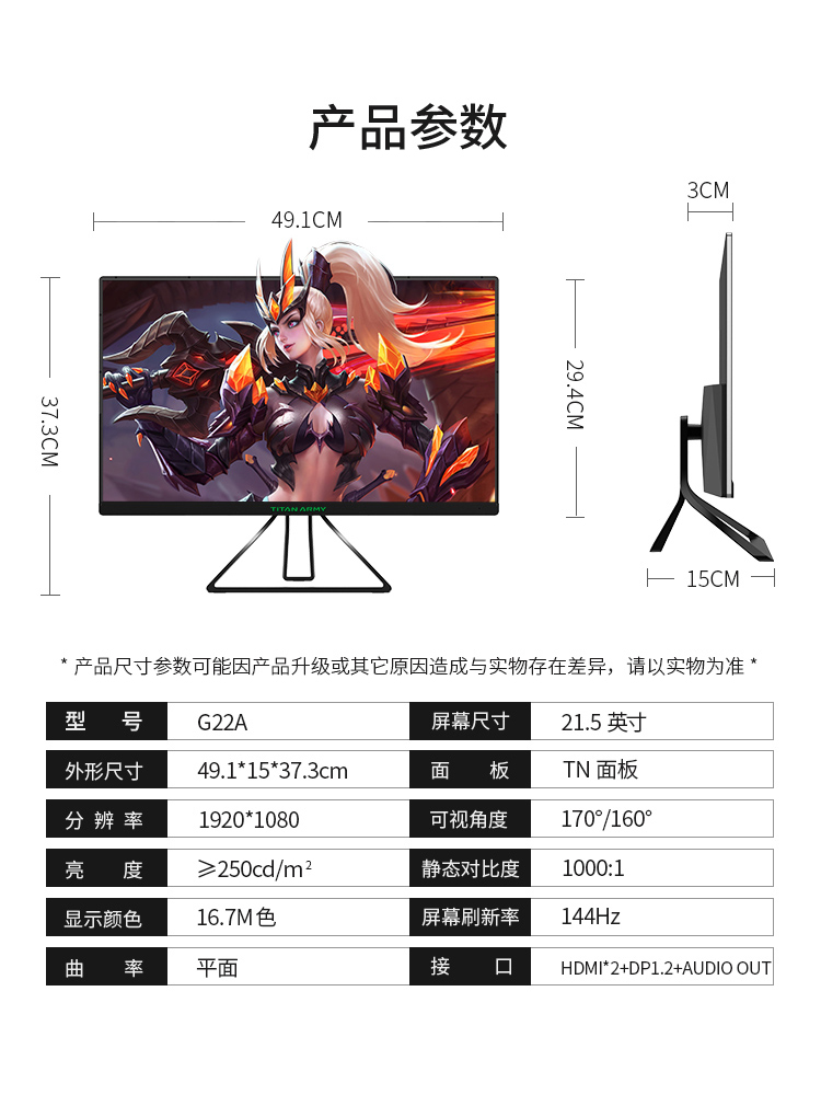 Titan Corps 21 5 "144Hz High Refresh Rate Professional Electric Competition Chicken Eating Display Narrow Border Computer Screen LCD Game Display Low Blu-ray HDMI DP G22A