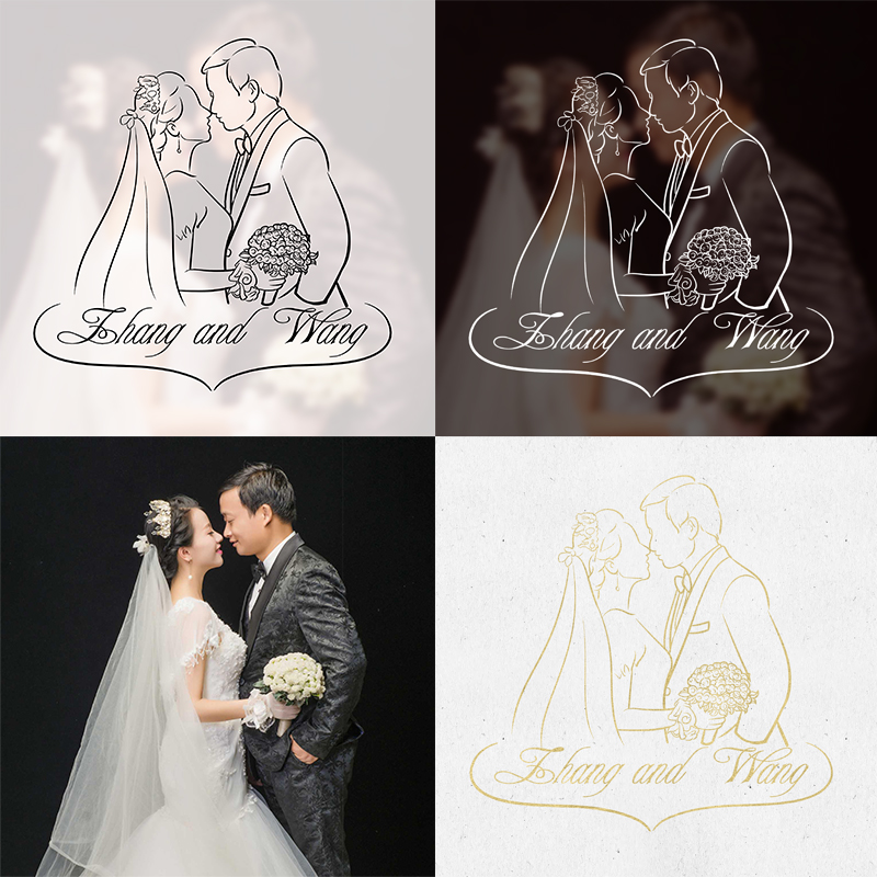 Portrait silhouette wedding logo design personalized custom character line sketch hand-painted wedding photo tattoo