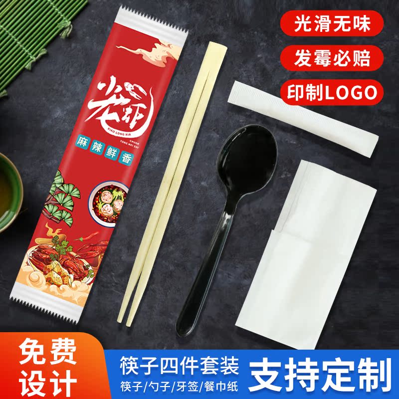 Disposable chopsticks group restaurant delivery four-piece set custom commercial hygiene and environmental protection packaging tableware custom logo