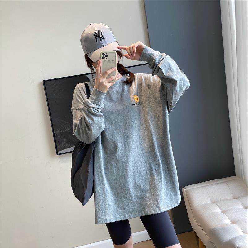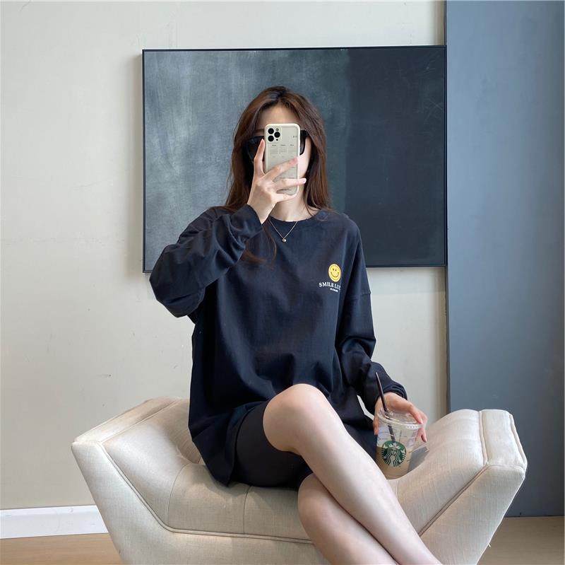 Japan SSLY round collar long sleeve T-shirt Women's loose autumn and winter style with a long version of the undershirt with a thin grin and a smile on the face