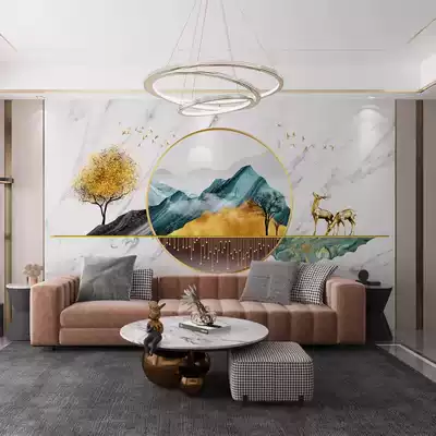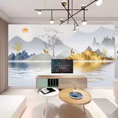 Chinese ink landscape bamboo wood fiber TV background wall integrated wall panel living room Office film and television Wall Wall Wall Wall