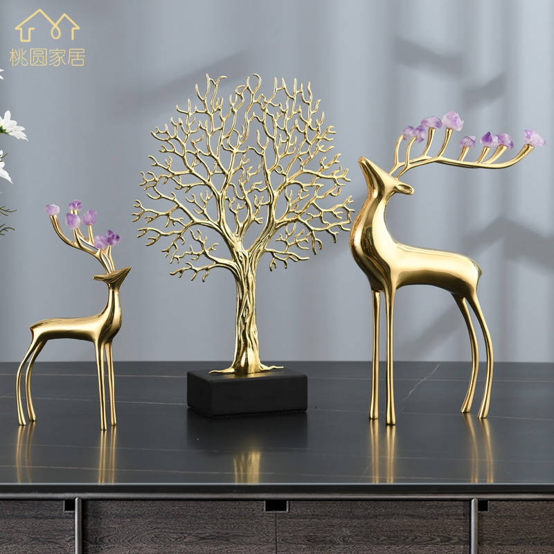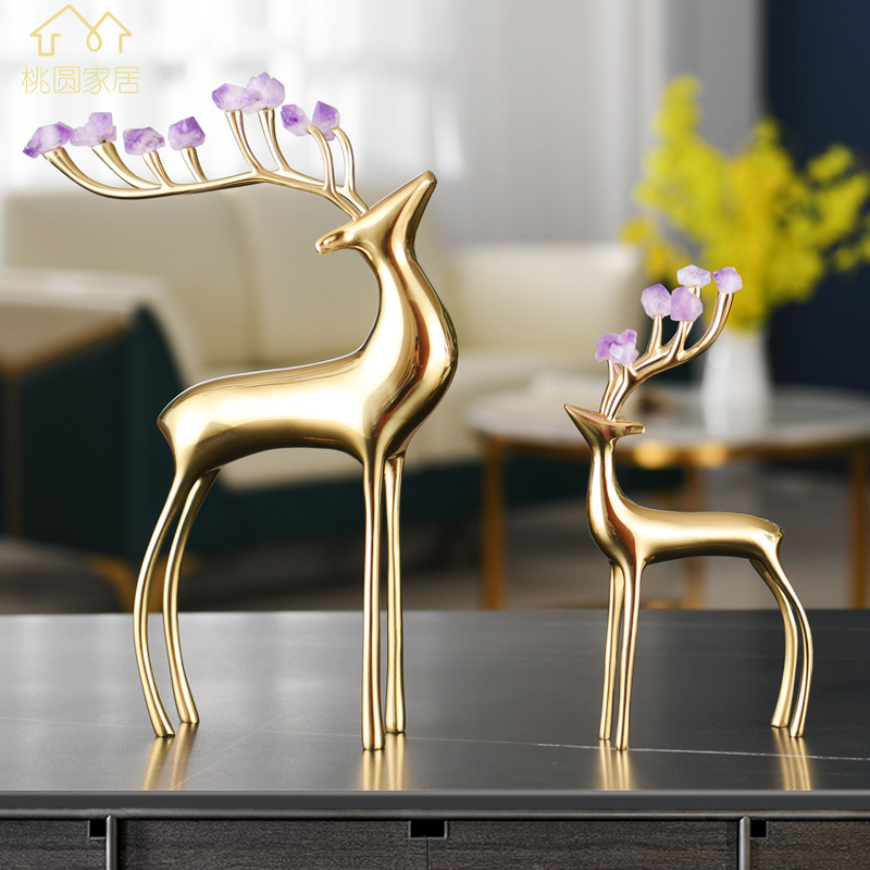 Light Luxury Pure Copper Deer Barley Ornament European-style Living Room Entrance Modern Simple Home Decoration Housewarming Opening Gift