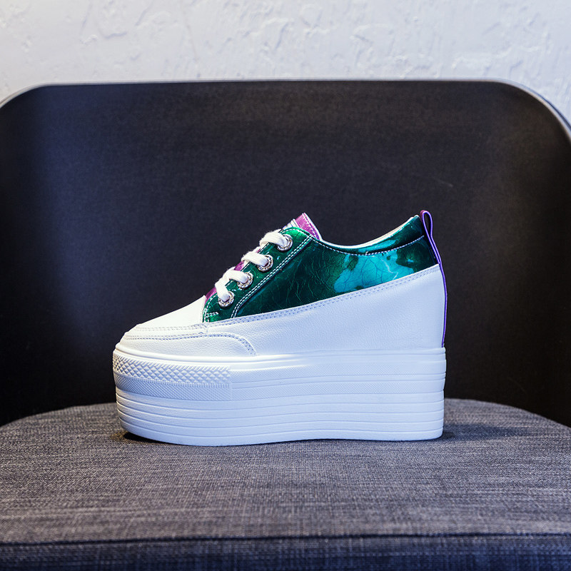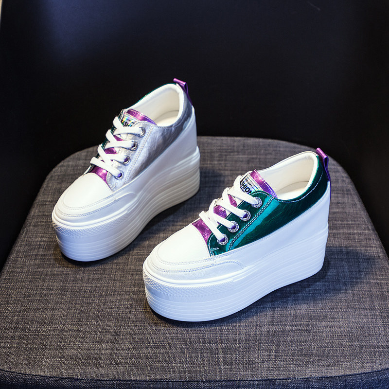 Small white shoes women's inner increase 12 cm spring and autumn style small super high heel sneakers 10 meters thick soled muffin shoes