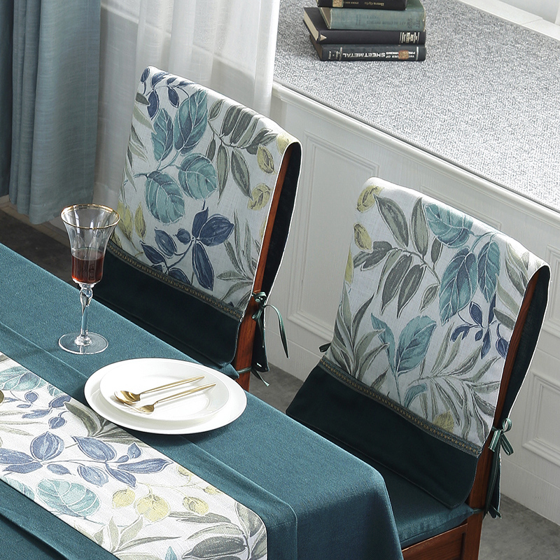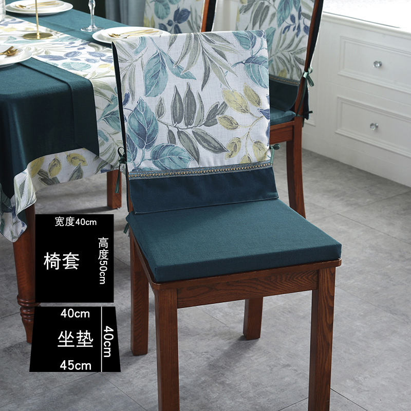 Dining table and chair cover cotton linen cloth art universal backrest thick two-piece solid wood stool seat cover new Chinese cushion set