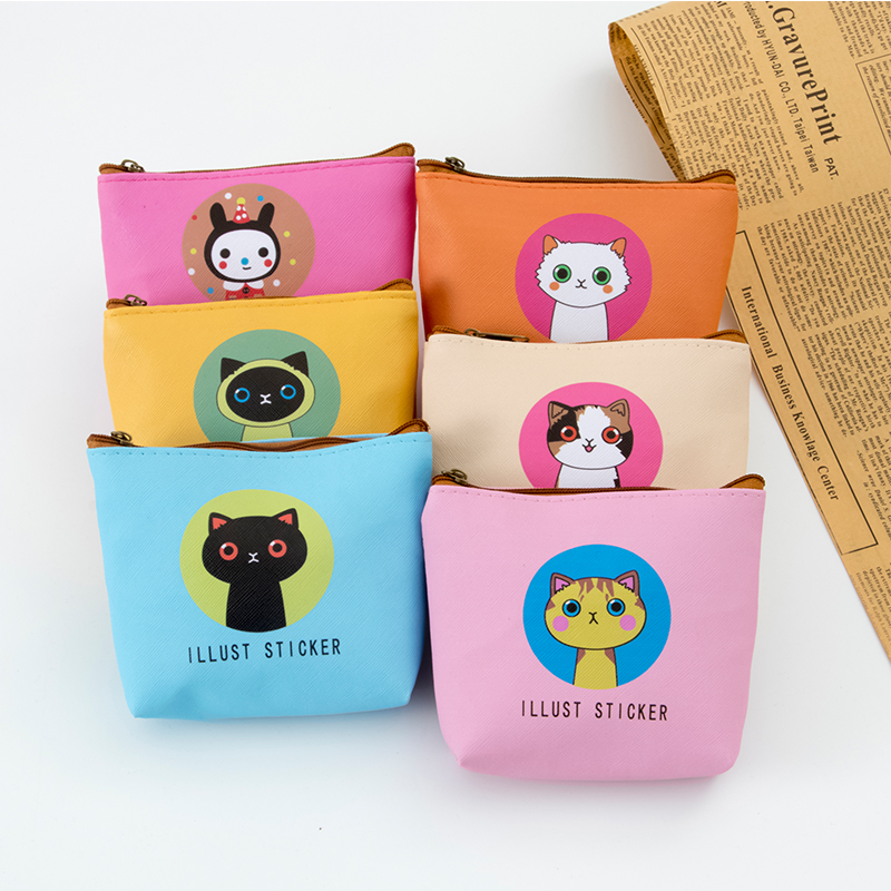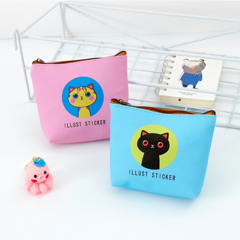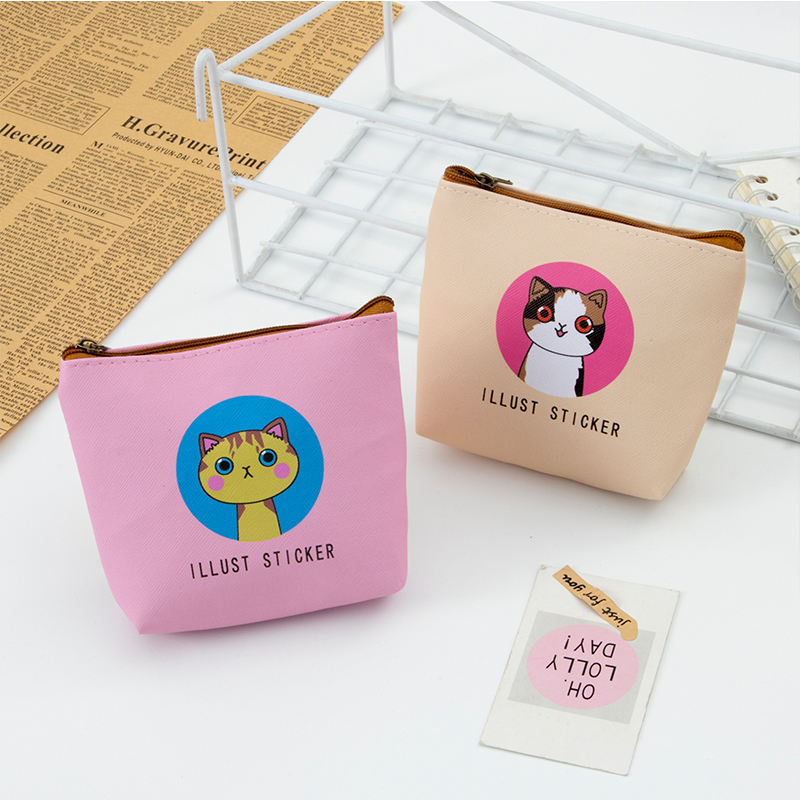 Net red Korean version ins cartoon cat waterproof coin coin purse pupil zipper storage bag hand coin purse