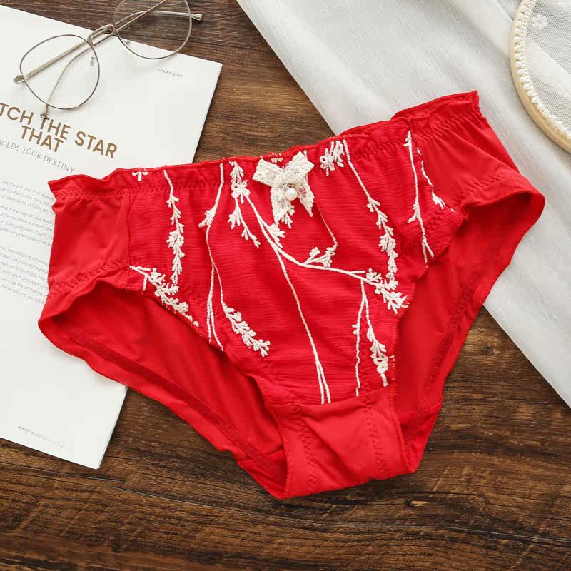 Red underwear girl's life ice silk daily girl's triangle trousers marry cow summer thin